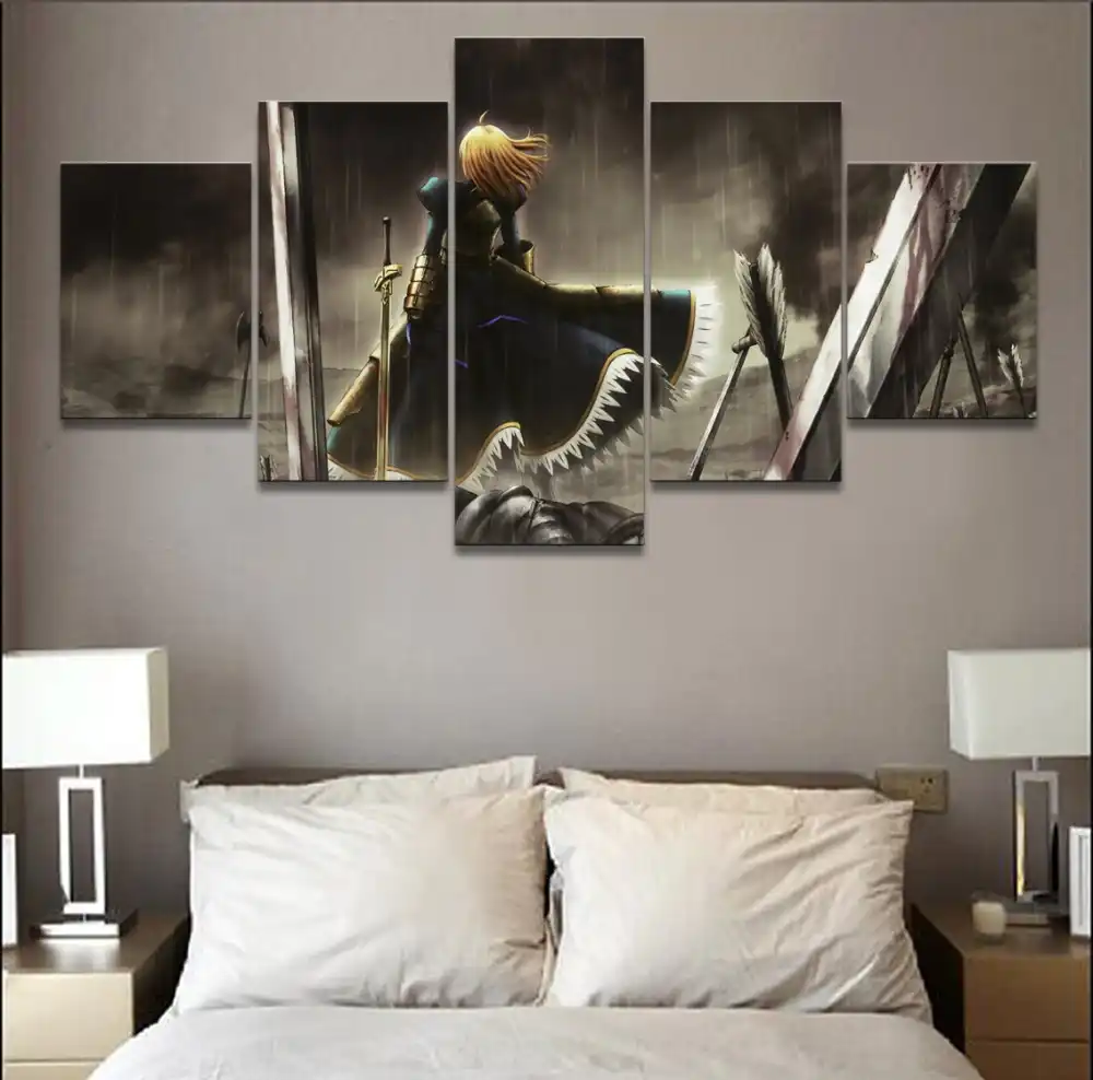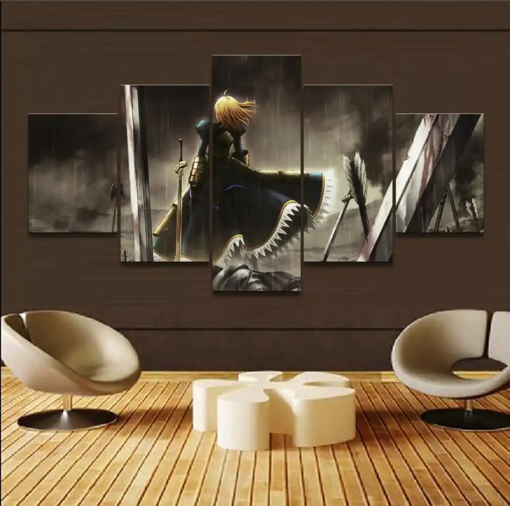 Quadri Su Tela Wall Art Stampe Hd 5 Pezzi Anime Fate Zero Sabre Pittura Soggiorno Quadro Decorativo Per La Casa Poster Modulare Pittura E Calligrafia Aliexpress