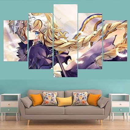 Csdecor Stampe E Quadri Su Tela 5 Pezzi Fate Grand Order Gioco Giovanna D Arco Modulare Pittura Su Tela Arte Murale Poster Moderno Casa Soggiorno Decorazioni Dimensione C Amazon It Casa E Cucina