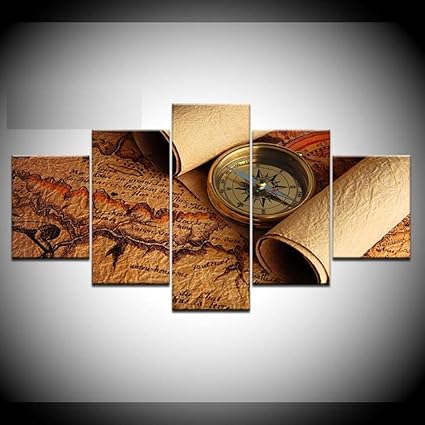 Quadri Su Tela Immagini Home Decor Quadro 5 Pezzi Bussola Vintage Tesoro Dipinti Con Mappa Per Soggiorno Stampe Hd Poster Amazon It Casa E Cucina