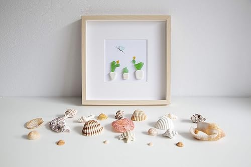 Quadro Fatto A Mano Con Vetri Di Mare E Piastrelle Di Mare Vasi Con Fichi D India Cactus E Piante Grasse Pezzo Unico Quadro Con Cornice Di Legno 25x25 Regalo Personalizzabile Amazon It Handmade