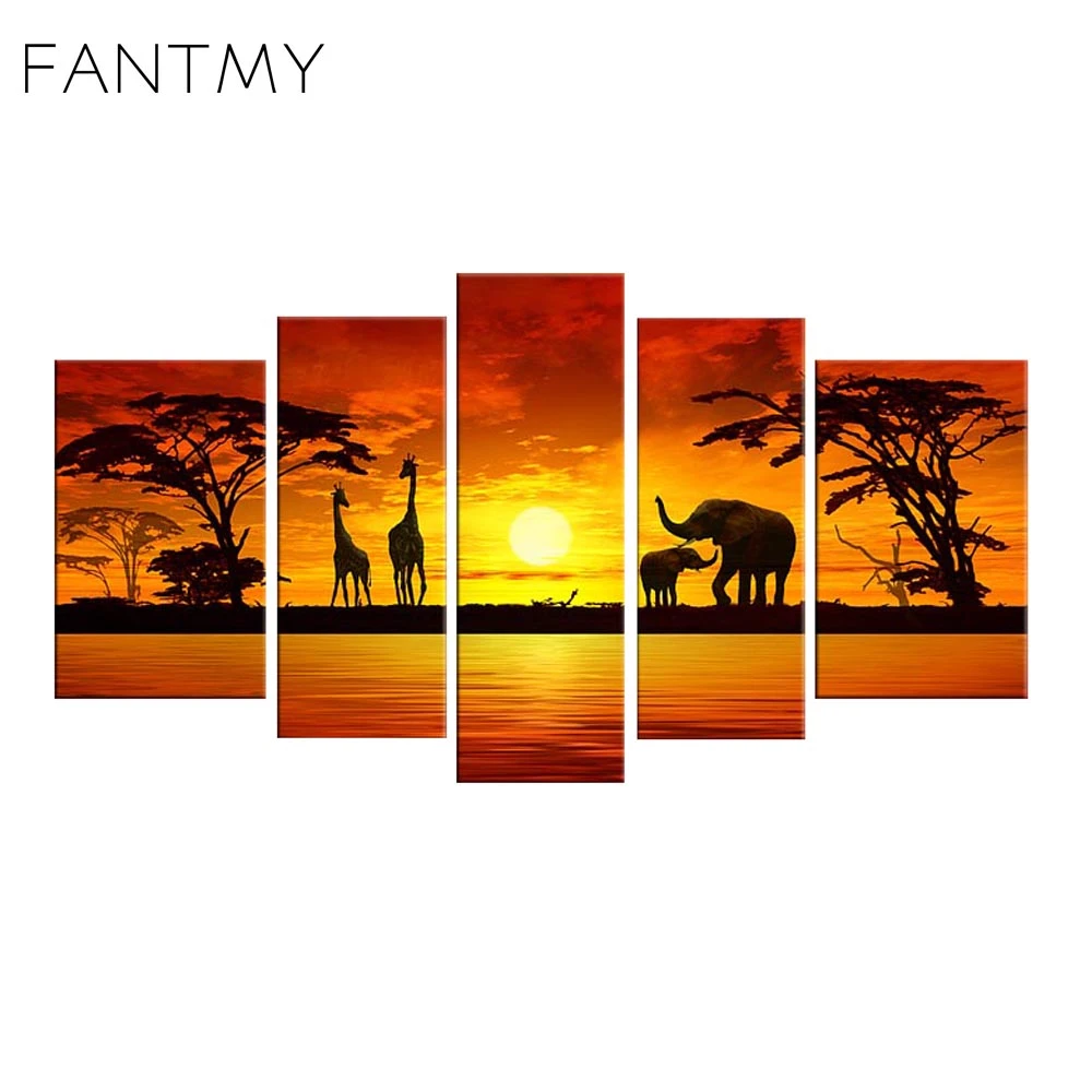 Fantmy Unframed Animali Elefante Africano Giraffa Dipinto A Mano Su Tela Quadri Dipinti Ad Olio Dai Numeri Per La Parete Del Soggiorno Picture By Number Picture Numbersoil Painting Aliexpress
