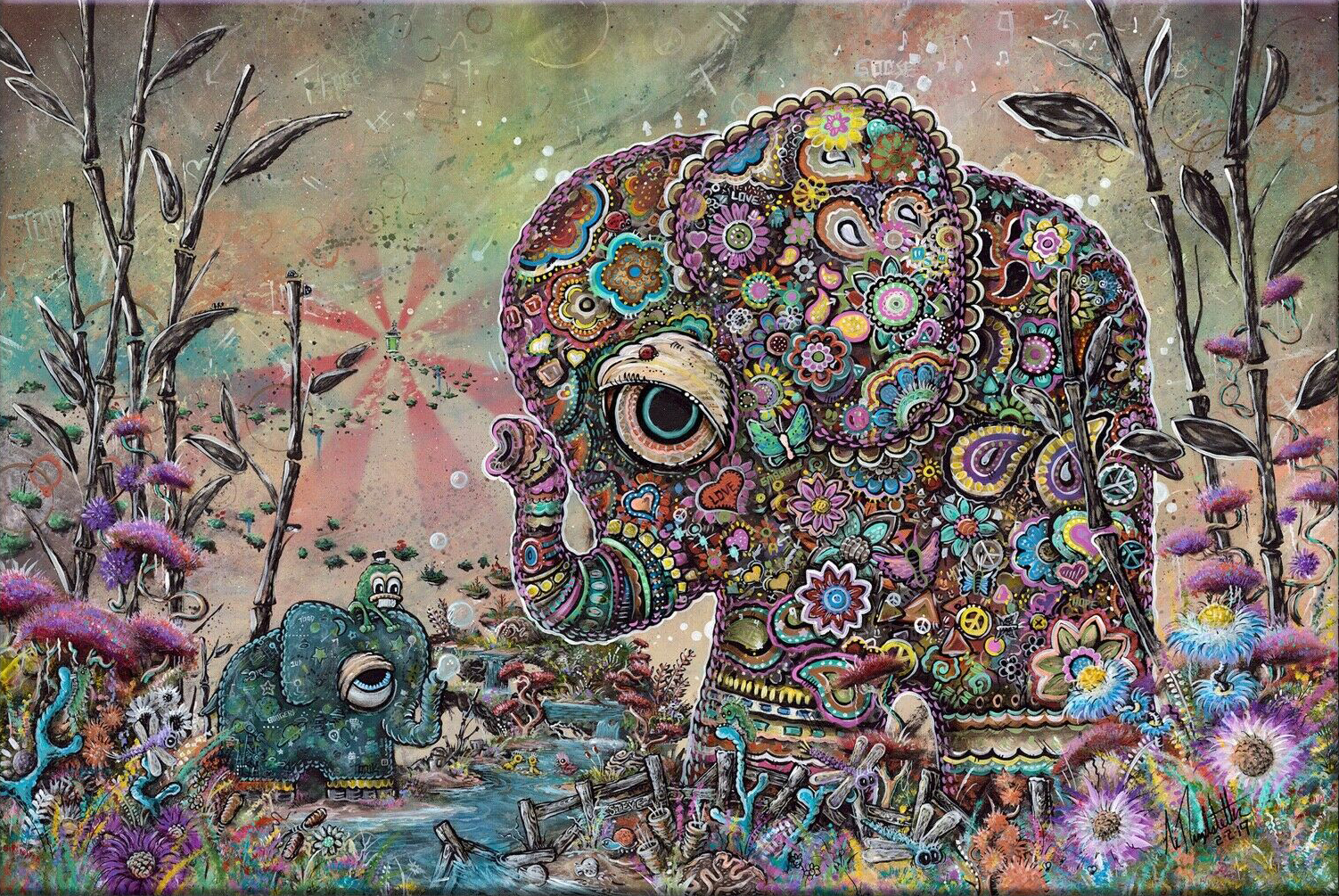 Elefante Su Quadro Acrilico Dipinto A Mano Kunstloft