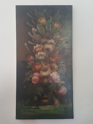 Dipinto Olio Su Tela Raffigurante Una Natura Morta Con Fiori Fine 800 Inizi 900 Ebay