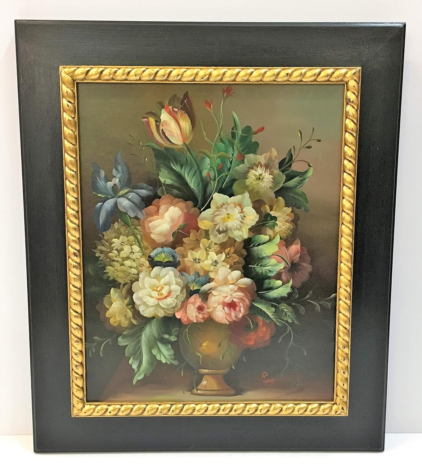 Dipinto Verticale In Stile Fiammingo Ad Olio Su Tela Con Cornice Soggetto Vaso Di Fiori Cm 56 2 X 66 2 Amazon It Handmade