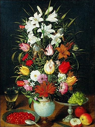 Dipinto Verticale In Stile Fiammingo Ad Olio Su Tela Con Cornice Soggetto Vaso Di Fiori Cm 56 2 X 66 2 Amazon It Handmade