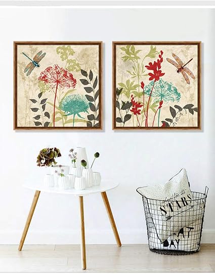 Mysy Fiori E Libellule Stampe Floreali Vintage Quadri Su Tela Per Soggiorno Camera Da Letto Decorativa Domestica Parete Art 50x50cm 2 Pezzi Senza Cornice Amazon It Casa E Cucina