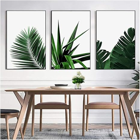 Justdolife 3pcs Imbiancatura Impostato Foglie Tropicali Quadri Da Parete Per La Decorazione Casa E Cucina Decorazioni Per Interni