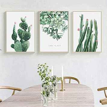 Akligsd Quadri Su Tela Pittura Su Tela Foglie Di Piante Verdi Per Soggiorno Cucina Camera Da Letto 50 Cm X 70 Cm X 3 Pezzi Senza Cornice Amazon It Casa E Cucina