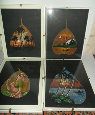 Coppia Di Quadri Indiani Ad Acquerello Dipinti Su Vere Foglie Anni 80 Vintage Ebay