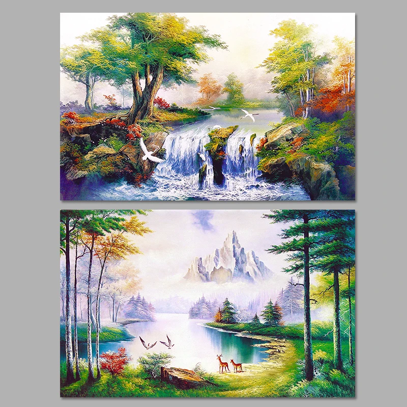 Animali Della Foresta Cervi Uccelli Fiume Lago Paesaggio Decorazione Della Parete Di Arte Quadri Su Tela Quadri In Living Room Home Decor Senza Cornice Canvas Painting Painting For Living Roomart Pictures Aliexpress
