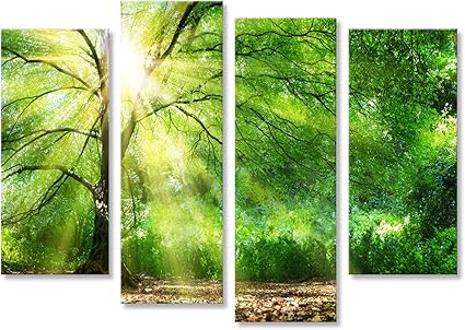 Runa Art Quadri Foresta Paesaggio 120 X 40 Cm Murale Tela Non Tessuta Verde Multipanello Moderni Decorazione 608433a Giallo Quadri Homelook