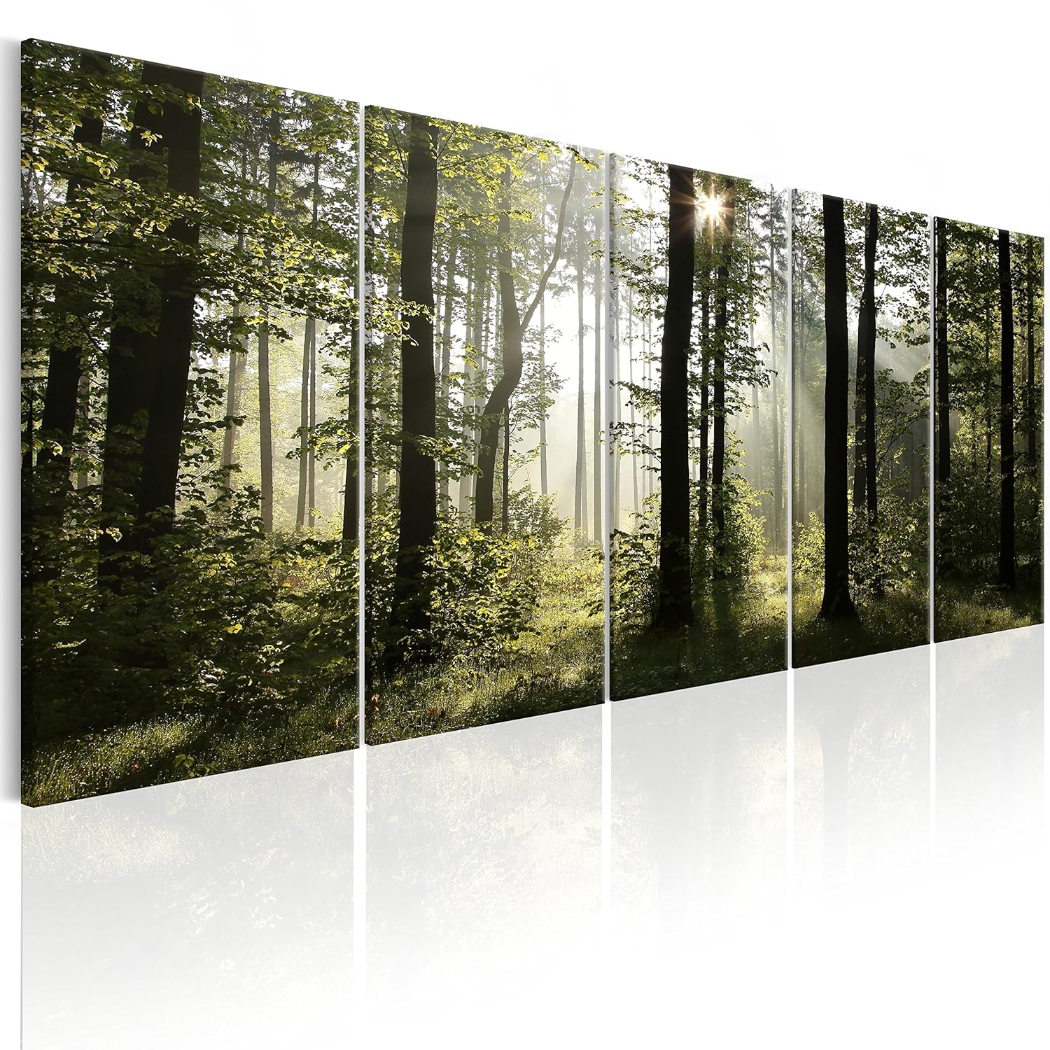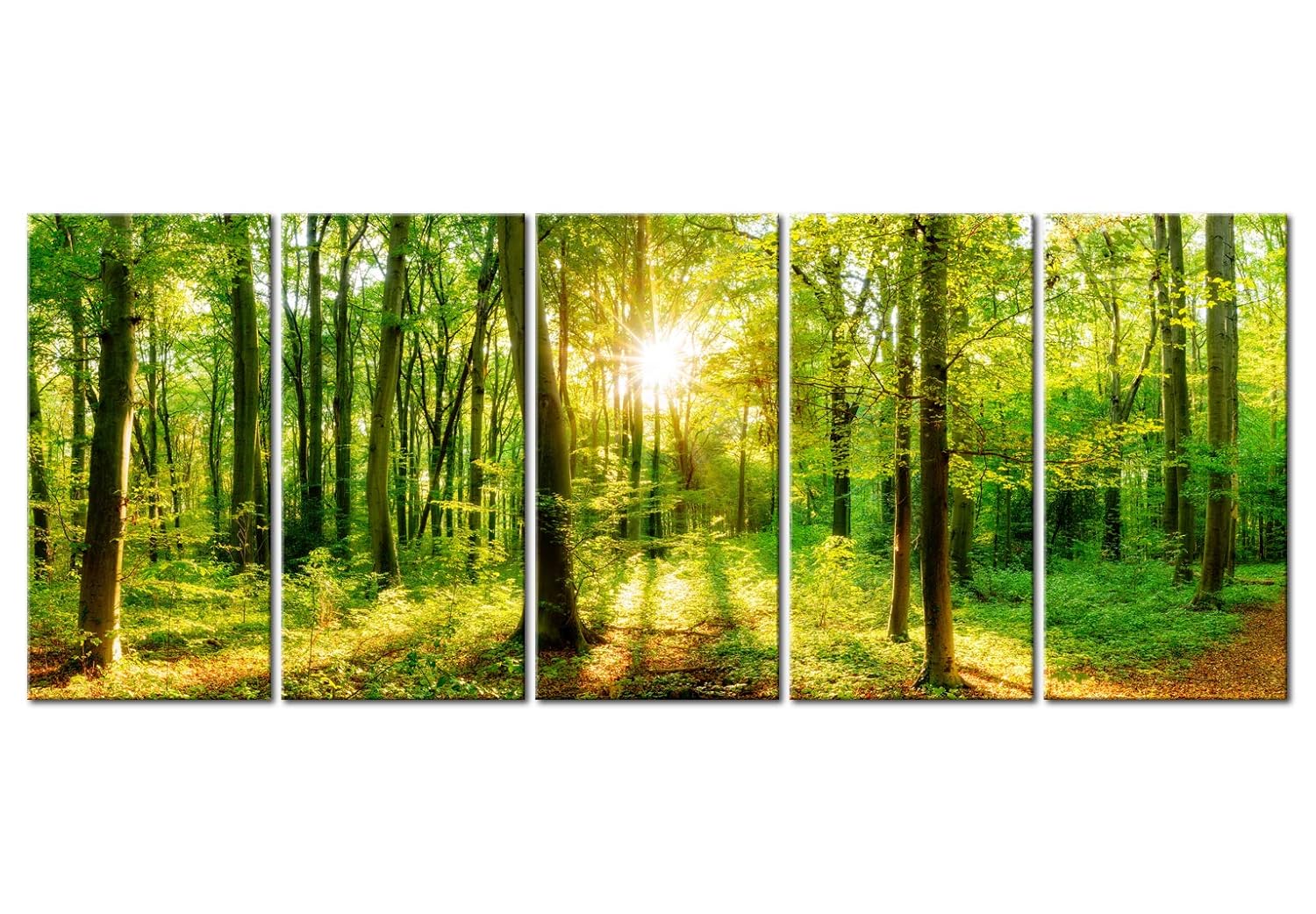 Runa Art Quadri Foresta Paesaggio 200 X 100 Cm 5 Pezzi Xxl Decorazione Murale Design Verde 611751a Verde Quadri Homelook
