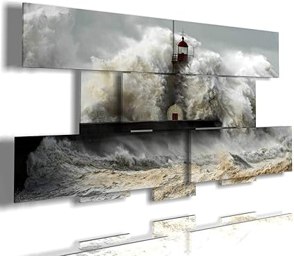 Duudaart Quadro Camera Da Letto Multilivello Quadri Moderni Faro Sul Mare In Tempesta 01 3d Grandi Dimensioni Amazon It Casa E Cucina