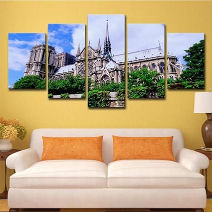 Hqatpr Quadri Grandi Dimensioni Quadro Modulare Canvas Art Picture Hd Poster Stampati 5 Pezzi Chiesa Di Notre Dame De Paris Dipinti Home Decor Opera D Arte Amazon It Casa E Cucina