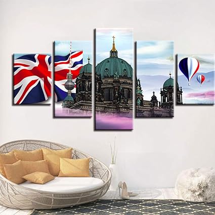 Quadro Quadri Grandi Dimensioni Quadri Moderni Decorazioni D Arte Immagini Pareti 5 Pezzi Mongolfiera Bandiere Britanniche Cattedrale Di Berlino Scenografie Poster Su Tela Arredamento Camera Ragazza Amazon It Casa E Cucina
