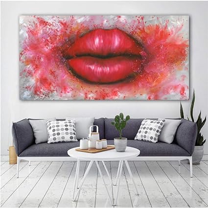 Rjunjie Arte Sexy Labbra Rosse Grandi Dimensioni Quadri Astratti Dipinti Immagini Per Soggiorno Moderna Decorazione Tela Arte Art 60x100 Cm Senza Cornice Amazon It Casa E Cucina