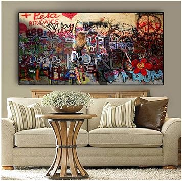 Wangchengp Donna Di Grandi Dimensioni Graffiti Sul Muro Quadri E Dipinti Su Tela Astratti Immagini Di Arte Di Strada Cuadros Immagine Da Parete Per Soggiorno Amazon It Giochi E Giocattoli