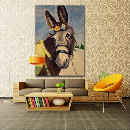 Asino Di Grandi Dimensioni Con Fiori Poster Da Parete Home Deor Animali Immagini Quadri Ad Olio Su Tela Amazon It Fai Da Te
