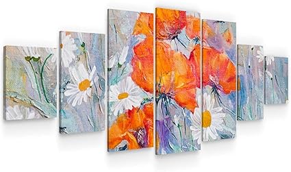 Startonight Grande Quadro Su Tela Papaveri E Margherite Grandi Quadri Moderni Fiori Stampe Soggiorno Xxl Di 7 Parti 100 X 240 Cm Amazon It Casa E Cucina