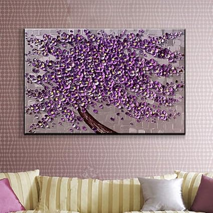 Gbwzz Dipinto Ad Olio Di Grandi Dimensioni Dipinto A Mano Coltello Dipinti Ad Olio Su Tela Quadri Astratti Moderni Di Arte Della Parete Pittura Acrilica Floreale Viola 60x90cm Amazon It Casa E Cucina