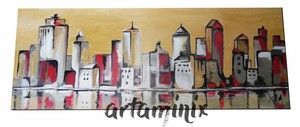 Quadri Dipinti Su Tela Palazzi Grattacieli America Rosso Bianco Dipinti Moderni