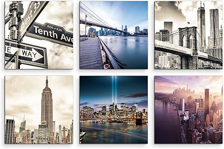 Assortimento Di 6 Quadri Moderni Serie Je 20 X 20 Cm Grattacieli Di New York Skyline Arte Decorazioni Per Interni