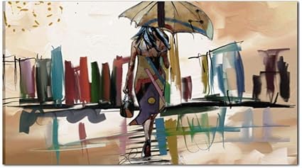 I Colori Del Caribe Quadri Moderni Astratti Dipinti A Mano Su Tela Alta Qualita Made In Italy Donna Con Ombrello Amazon It Casa E Cucina