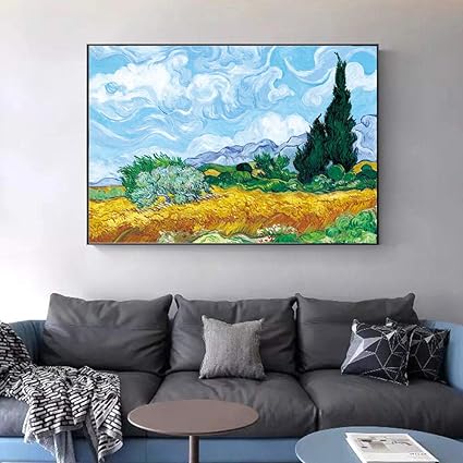 Ruyun Van Gogh Cipresso Nel Campo Di Grano Quadri Su Tela Quadri Impressionisti Riproduzioni Immagini A Parete Decorazioni Per La Casa 60cm X90cm Nessuna Cornice Amazon It Casa E Cucina