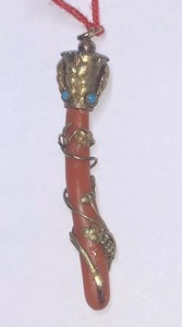 Ciondolo Antico Epoca 900 Cornetto In Corallo Salmone Montato In Oro E Turchesi Ebay