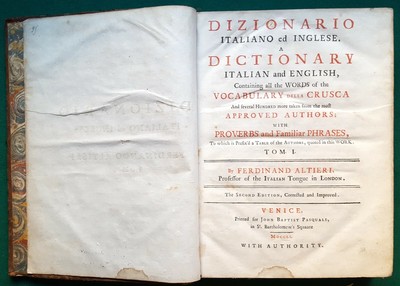 Altieri Dizionario Italiano Inglese Inglese Italiano Venezia Pasquali 1751 Ebay