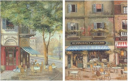 Quadri Di Legno Facciate Caffe Paris Piastre Di Legno Set Di 2 Quadri Da 19 Cm X 25 Cm X 4 Mm Adesivo Facile Da Appendere Decorazione Da Parete Per Casa Cucina Ristorante Bar Amazon It Casa