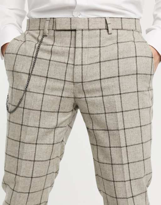 Twisted Tailor Pantaloni Affusolati Pietra A Quadri Con Catena Asos