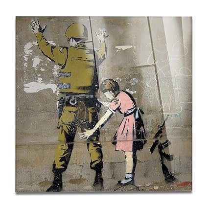 Tele Giallobus Quadro Pronto Da Appendere Stampa Su Vetro Acrilico Plexiglass Banksy Vari Formati Xxl Quadri Moderni Arredo Casa Design Ragazza Perquisisce Soldato 50x50 Cm Cucina Cancelleria E Prodotti Per Ufficio