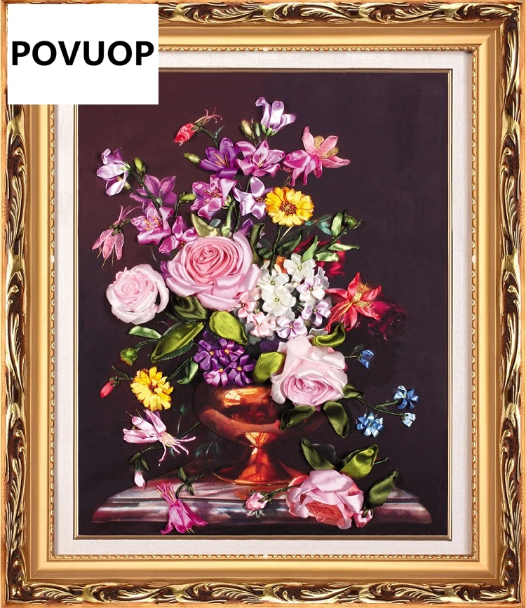 Povuop 5d Stampa Nastro Ricamo 60x50 Cm Fiori Del Fiore Di Modo Quadri A Punto Croce Ricamo Tridimensionale Embroidery Blazer Ribbon Laceribbon Work Embroidery Aliexpress