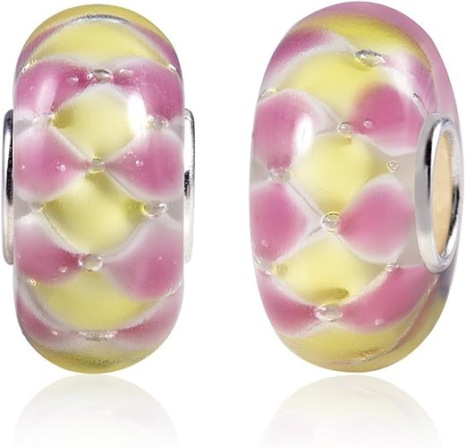 Materia In Vetro Di Murano Perline Giallo Rosa A Quadri Element 925 Argento Murano Perle Di Vetro E Perline Rosa Giallo 115 Amazon It Gioielli