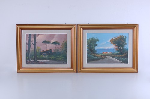 Coppia Quadri A Vitis Olio Su Tavola Paesaggi Ebay