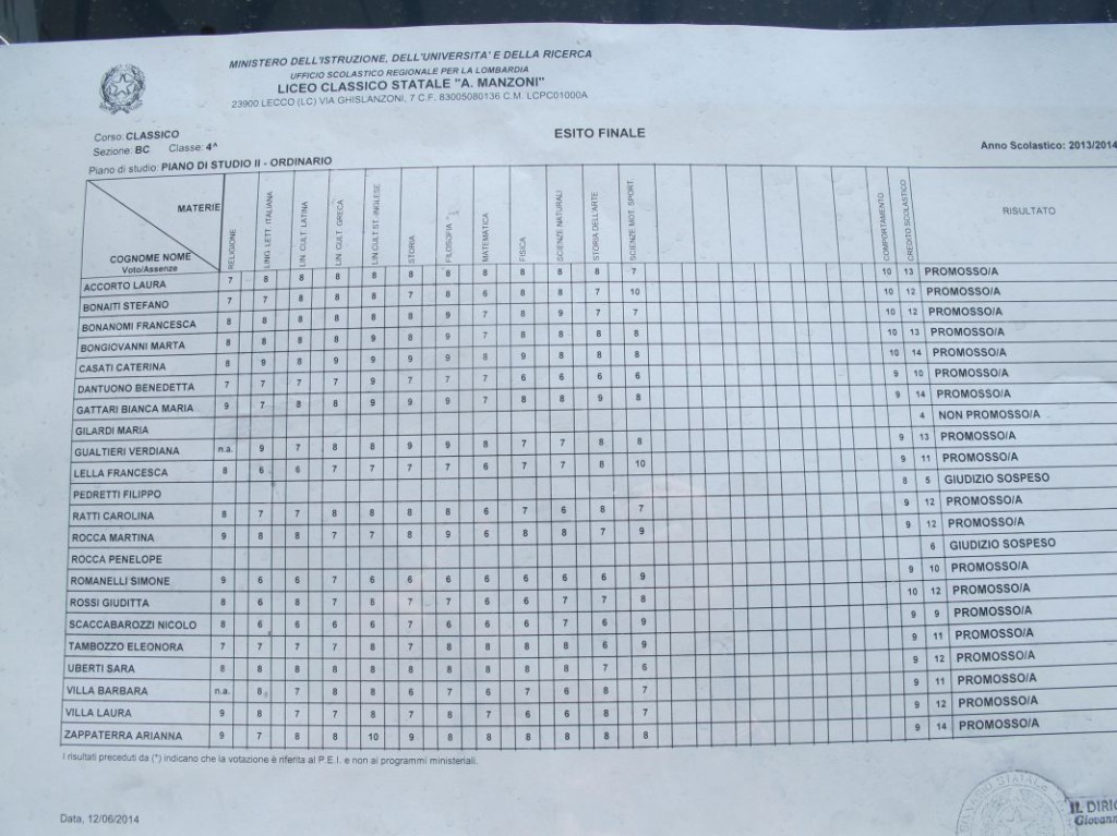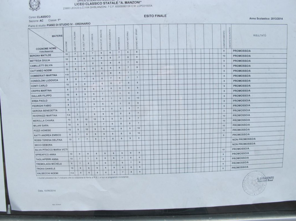 Speciale Scuole 2014 I Voti Di Fine Anno Del Liceo Classico Manzoni Lecco Notizie
