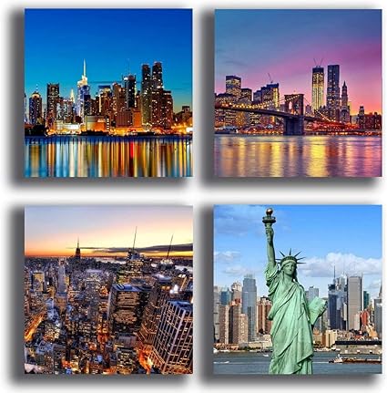 Stampa Su Tela Canvas Printerland Quadri New York Manhattan 4 Pezzi 30x30 Cm Arredamento Arte Astratto Xxl Arredo Per Soggiorno Salotto Camera Da Letto Cucina Uffico Bar Ristorante Legno Arte Decorazioni Per