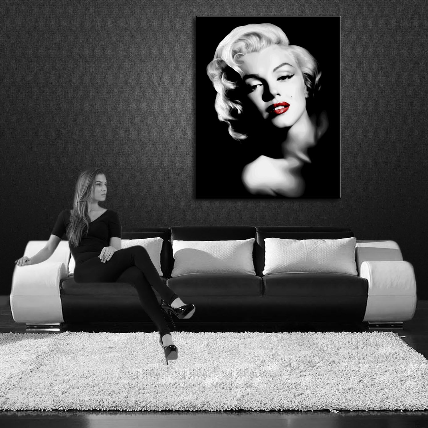 Monroe Labbra Rosse Quadro Su Tela 50x70 Cm Stampa Marilyn Arredo Bianco Nero Eur 38 95 Picclick It
