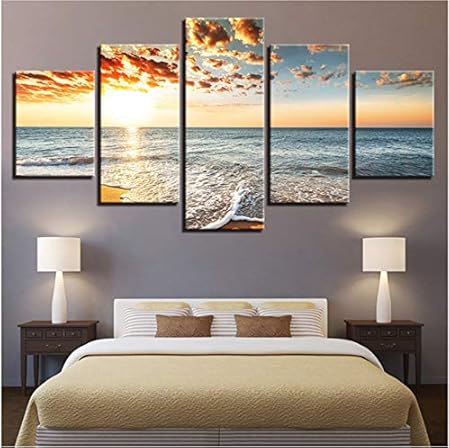 Viccc Decorazioni Per La Casa 5 Pannelli Stupendi Paesaggi Marini Su Tela Dipinti A Parete Per La Pittura Di Quadri Modulari Amazon It Casa E Cucina