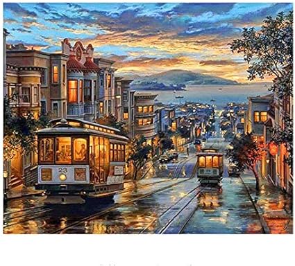 Wazhcy Citta Crepuscolare Pittura Fai Da Numeri Numeri Bus Citta Astratto Dipinto Ad Olio Su Tela Quadri Marini Decorazione Decorazione Acrilica 40x50 Cm Con Cornice In Legno G Amazon It Casa E Cucina