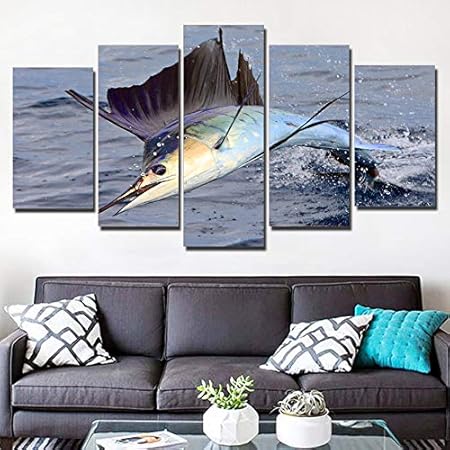 Wangpdp Stampa Dipinti Arte Murale 5 Pezzi Pesce Spada Immagini Di Paesaggi Marini Quadri Astratti Animali Poster Soggiorno Decorazioni Per La Casa Amazon It Casa E Cucina