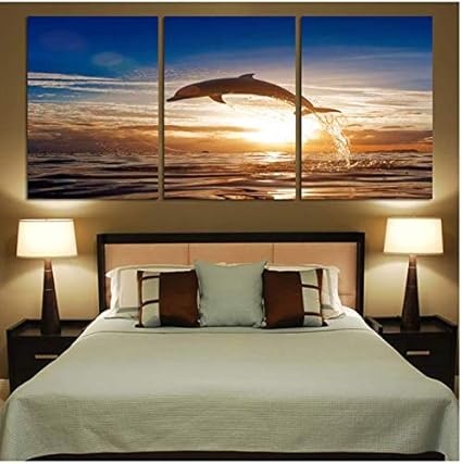 Dipinti Di Paesaggi Marini Al Tramonto Delfini Allegri Stampe Su Tela Quadri Murali Decorativi Per La Camera Da Letto Dei Bambini 50x70cm Senza Cornice Amazon It Casa E Cucina