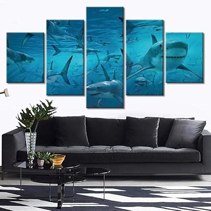 Wslin Dipinti Su Tela Scuola Di Squali Animali Oceano Fondali Marini Quadri Su Tela Pittura Animali Per La Casa Animali Poster E Stampa Immagini Per Pareti Decorazioni Per La Casa 200x100cm Amazon It