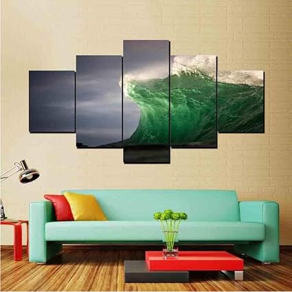 Quadri Moderni Su Tela Soggiorno Quadro Su Tela Quadro 5 Pezzi Onde Marine Ondulate Immagini Di Paesaggi Marini Decorazioni Per La Casa Stampe Hd Poster Amazon It Casa E Cucina