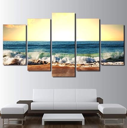 Lqwe Pittura Su Tela Senza Cornice Hd Stampa Quadri Modulari Canvas Poster 5 Sunshine Beach Sea Waves Foto Di Paesaggi Marini Amazon It Casa E Cucina