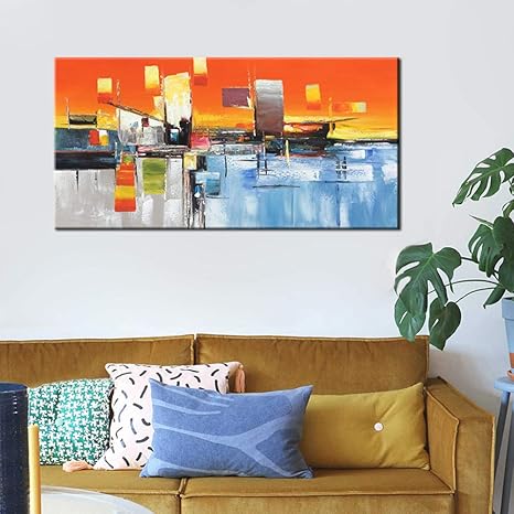 Ylnyh Paesaggi Marini Quadri Moderni Con Spatola Arte Olio Su Tela Lontano Dal Tramonto Fatti A Mano Di Alta Qualita Amazon It Casa E Cucina
