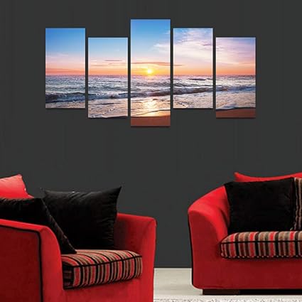 Eotifys Dipinti Su Tela Decorazioni Immagini Murali Quadri 5 Pannelli Splendidi Paesaggi Marini All Alba Moderna Stampa Hd Dipinti Poster Modulari Casa Amazon It Casa E Cucina