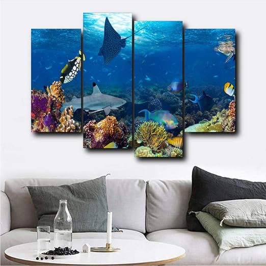 Fydzyz Frames Quadro Pannelli Quadri Astratti 4 Pannelli Di Pesci Marini Subacquei E Stampe Su Tela Opere D Arte Vintage Da Parete Per La Decorazione Del Salotto Di Casa Amazon It Casa E Cucina