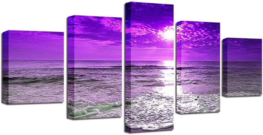 Plpir Quadri Su Tela Quadro Quadro Modulare 5 Pezzi Viola Tramonto Onde Del Mare Poster Dipinti Di Paesaggi Marini Spediti 20x35 20x45 20x55cm With Frame Amazon It Casa E Cucina